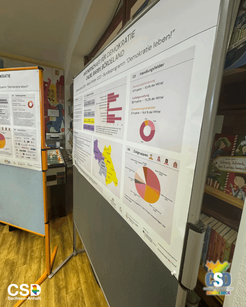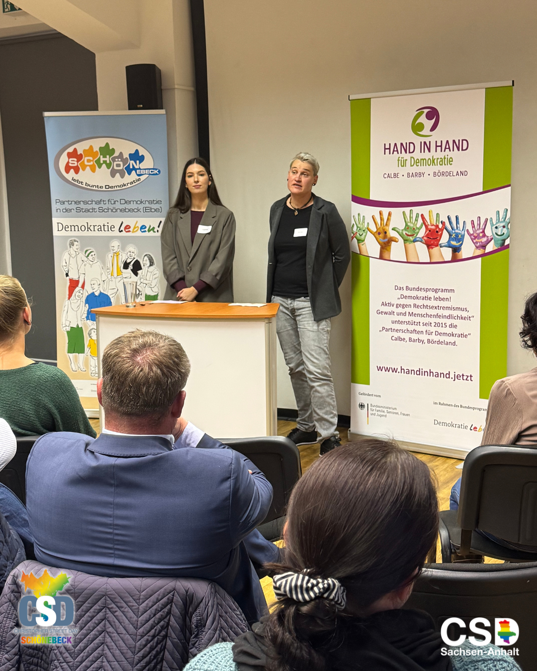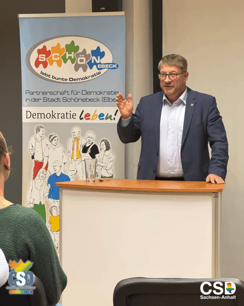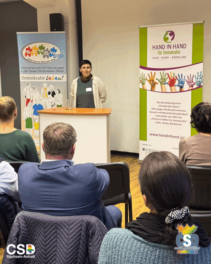 Es war inspirierend zu erleben, wie viele Projekte für Demokratie und Vielfalt bereits umgesetzt wurden – und welche neuen Ideen in der Region entstehen. Besonders im Gedächtnis geblieben sind uns die beiden spannenden Workshops und das engagierte Grußwort des Oberbürgermeisters von Schönebeck.